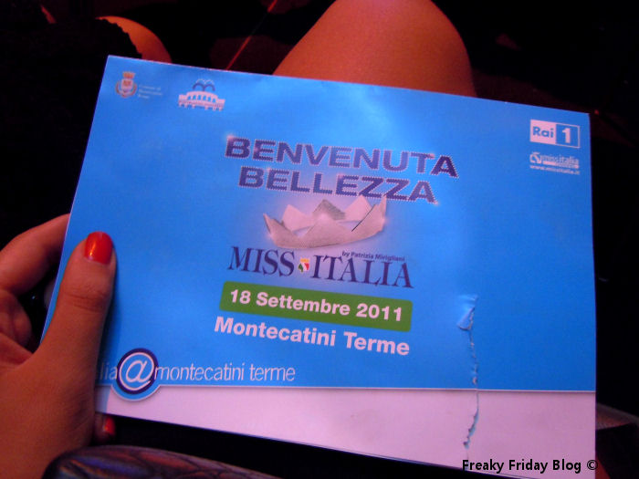 Con un pò di ritardo ecco il post della giornata, per raccontarvi il mio Day 2 con Miss Italia. Ieri la nostra giornata è iniziata con l’incontro con le Miss e la stampa, abbiamo colto un pizzico della vita privata delle ragazze che si rivedevano per (l’unica ora a disposizione)con parenti ed amici prima della diretta. Dopo l’incontro abbiamo assistito al dibattito “Nudo artistico.. nudo sconveniente” in cui erano presenti due delle miss eliminate, la Modugno e la Piergianni. Le regole della Mirigliani però al riguardo sono molto chiare, Miss Italia deve rappresentare una ragazza sconosciuta e della porta accanto, semplice e genuina. Voi siete d’accordo con le eliminazioni?