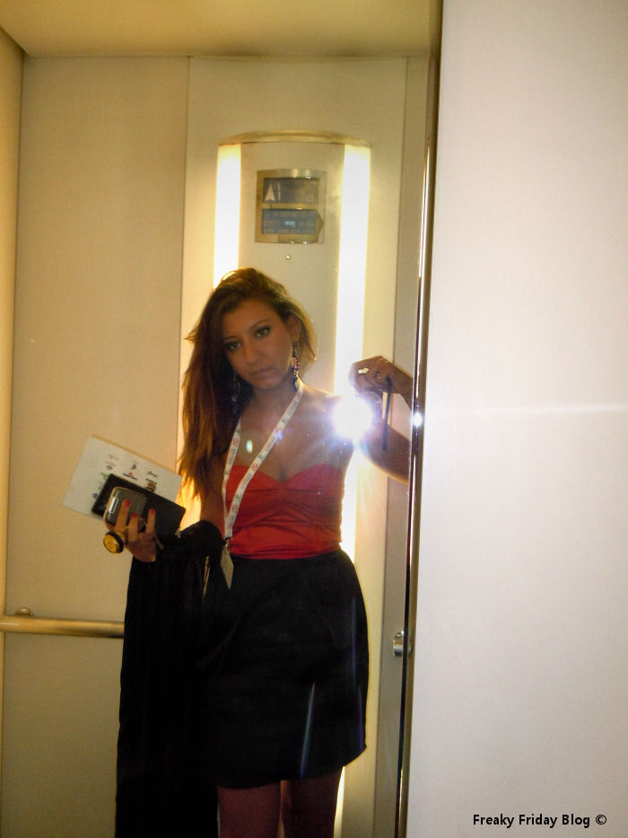 Siamo giunti alla prima serata di diretta. Purtroppo la location delle mie foto è spesso la camera dell’hotel, i tempi sono molto rapidi e non avendo nessuno che possa scattarmi qualche foto, spero possiate accontentarvi anche così!