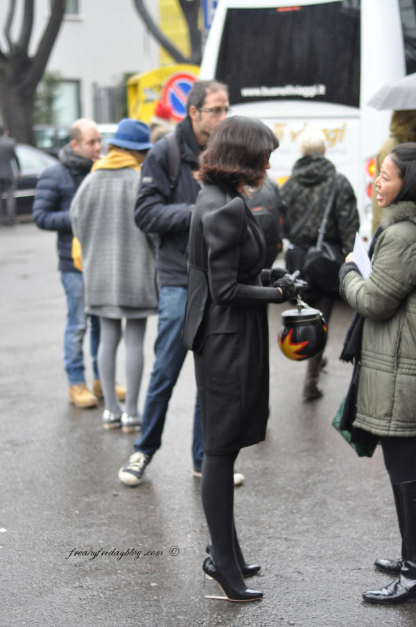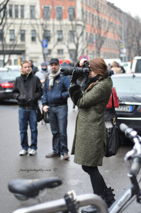 Una Milano sotto lo zero, fiocchi di neve che rendono magiche le foto, pioggia e un freddo polare che non tutti percepivano (a quanto pare). Sandali e sandaletti, top, maniche corte, niente collant, perché qui parliamo di moda, moda estrema. Ecco alcune scene che mi hanno colpito durante i miei giorni di fashion week. Dai cappotti ai cappelli con i pon pon, dagli occhiali da sole per proteggere dalla pioggia, a ballerine improbabili, da fotocamere reflex a tracolla a pellicce in tutte le varianti di forma e colore.